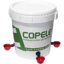 Bebedero automático de plástico para conejos, taza de plástico cubierta con chapa de acero inoxidable, para evitar que puedan morderla o romperla, espita para conexión de goma flexible y pestañas elaboradas en plástico para fijarlo en malla de alambre y sistema de cierre de agua mediante boya.