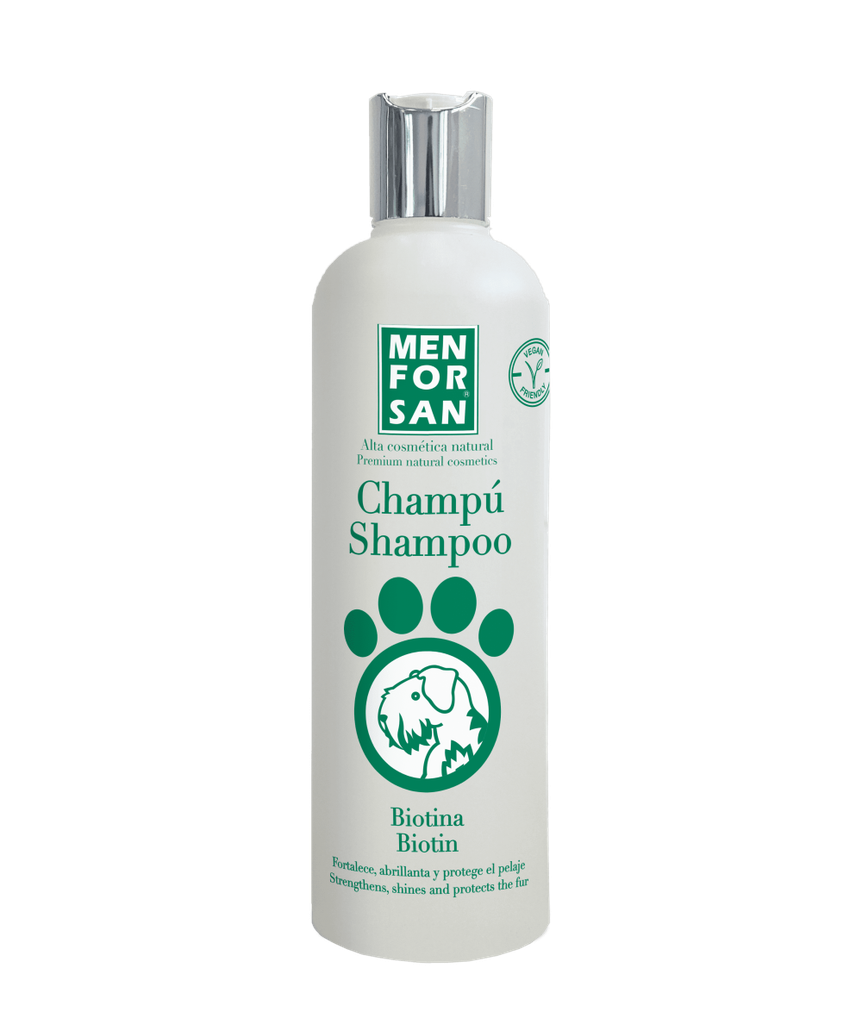 Champú de máxima calidad para perros sin colorantes ni perfume y con propiedades regenerativas del pelaje. La BIOTINA o Vitamina B7 perteneciente al complejo de vitaminas del grupo B ayuda a fortalecer el pelaje fino y quebradizo y mejora la calidad de las estructuras de queratina regenerando y fortaleciendo las raíces capilares. Evita los problemas de piel seca abrillantándola y previniendo la dermatitis seborreica causante de la caída del pelaje. La utilización frecuente de este champú garantiza unos resultados espectaculares. Este champú se puede emplear frecuentemente y esta recomendado para todo tipo de razas de perros.
