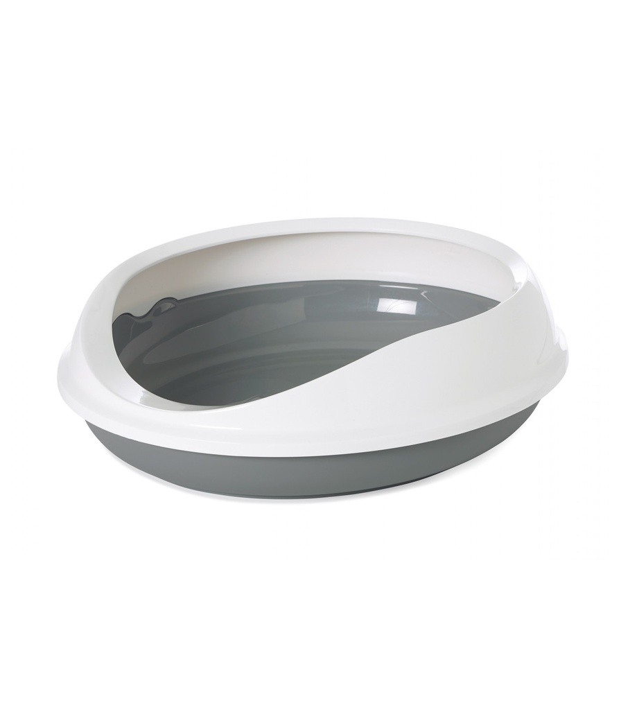 Bandeja higiénica para gato con forma oval y borde alto para mantener la orina y la arena dentro de la bandeja. El modelo Figaro es una bandeja sanitaria para gatos moderna, de forma ovalada y con borde alto.