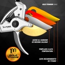 Con un recubrimiento de titanio, nuestras tijeras ofrecen un rendimiento un 60% superior y una durabilidad hasta un 300% mayor. Esto garantiza que tengas unas tijeras de por vida capaces de enfrentarse a cualquier desafío en el jardín.